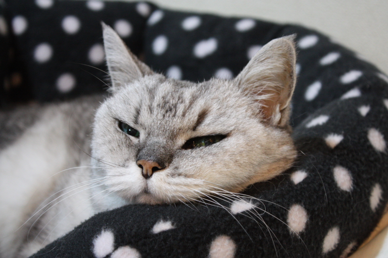 ハナザワさんの老後は、甲状腺亢進症、慢性腎不全、貧血、腰椎変形、股関節壊死など 老猫の典型的な病状を含む介護生活でした。 延命ではなく「最期まで口からご飯を食べる」をモットーに獣医師とその「生きる」を模索した記録です。