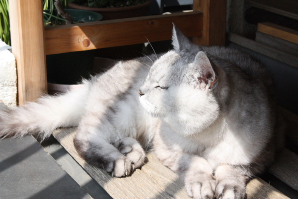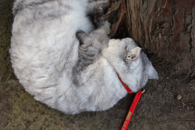 外へ出かけても、気持ちよい場所をみつけて寝るだけなのです・・・。