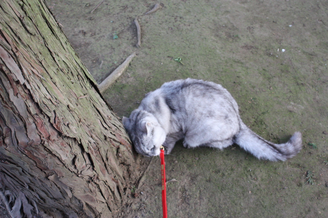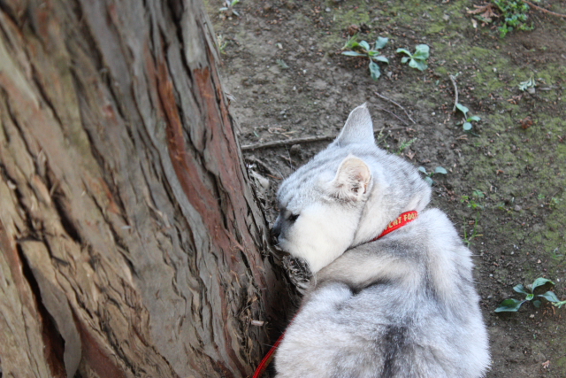 むりやり、草から離したら今度は木のにおいがきになるようです・・・