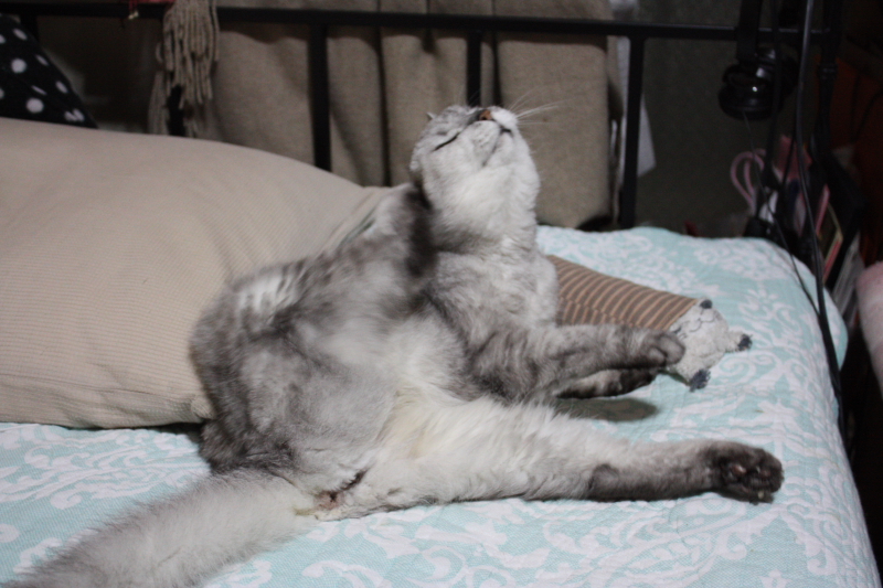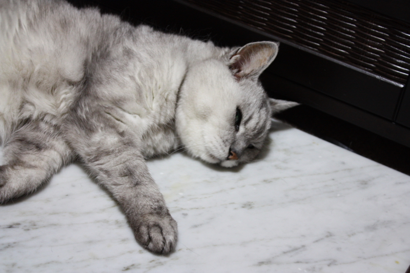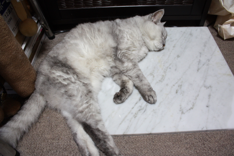 3連休から ハナザワさんとべったり・・・・ 夢に見たマターリ生活?! まず、安静の基本をハナザワさんが伝授・・・ その1 気持ちいい場所をみつける(あるいは設営を要求する) その2 薄目をあけて、何にも考えず・・・ぼ~~~~~~っ その3 心配させないように、時々 早く動く・・・・・ その4 動いたついでに寝返りをうつ・・・ これが床ずれをしないコツよ・・・・ わかった? ハナザワさんも、 だいぶ弱ってきたのかな。 リビングや、洗面所にいかなくなり、 私の部屋とトイレの往復だけになりました。 膝が痛むようで、横になる時に大きな声で鳴きます。 鎮痛剤か切断か・・・ 老猫には酷な手段しか残っておらず どうにもしてやれない・・・ けれど、ご飯を美味しそうに食べてくれるし まだまだ、トイレは自分でできる! 補助階段つかいながらベットにも上がれる! 自分よりハナザワさんが心配な日々です。 |